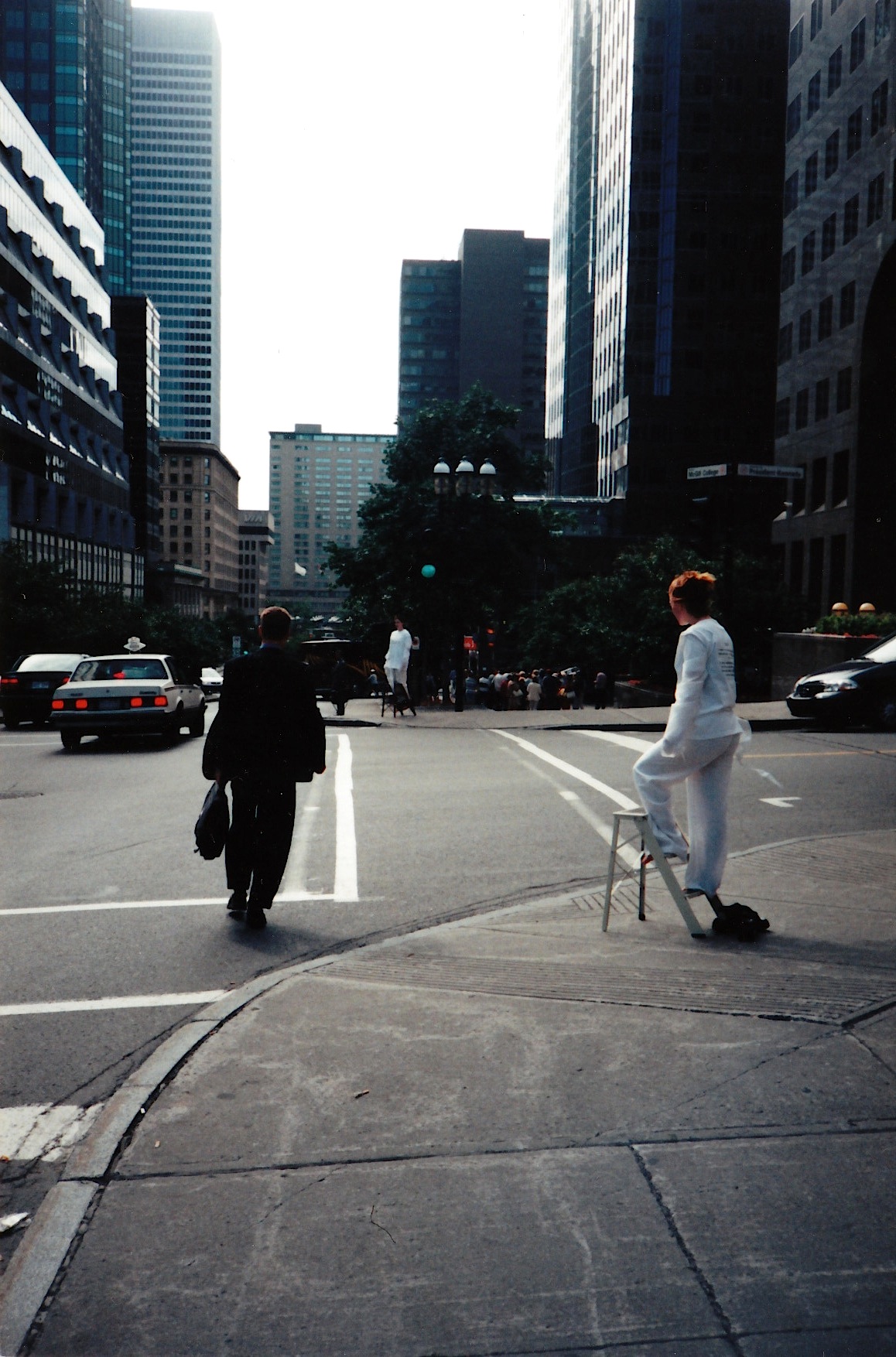 Above, Caroline Alexander at the corner of President-Kennedy and McGill College, 9am, Thursday June 10, 1999.