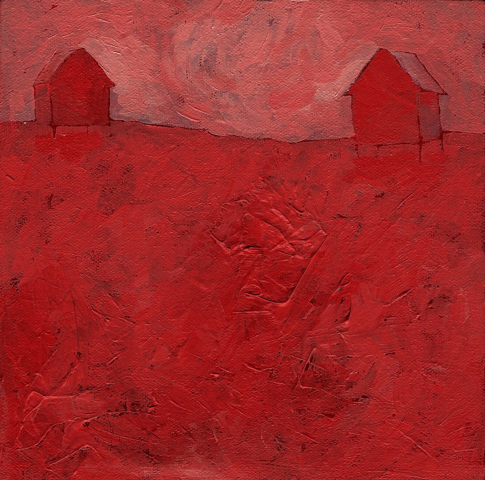 The Home series consisted of approximately 50 works of acrylic on canvas. Each was a meditation on the familiar, peaked-roof iconic house form, as well as an exploration of a limited colour palette. Each little house was animated in some way, and anthropomorphic.