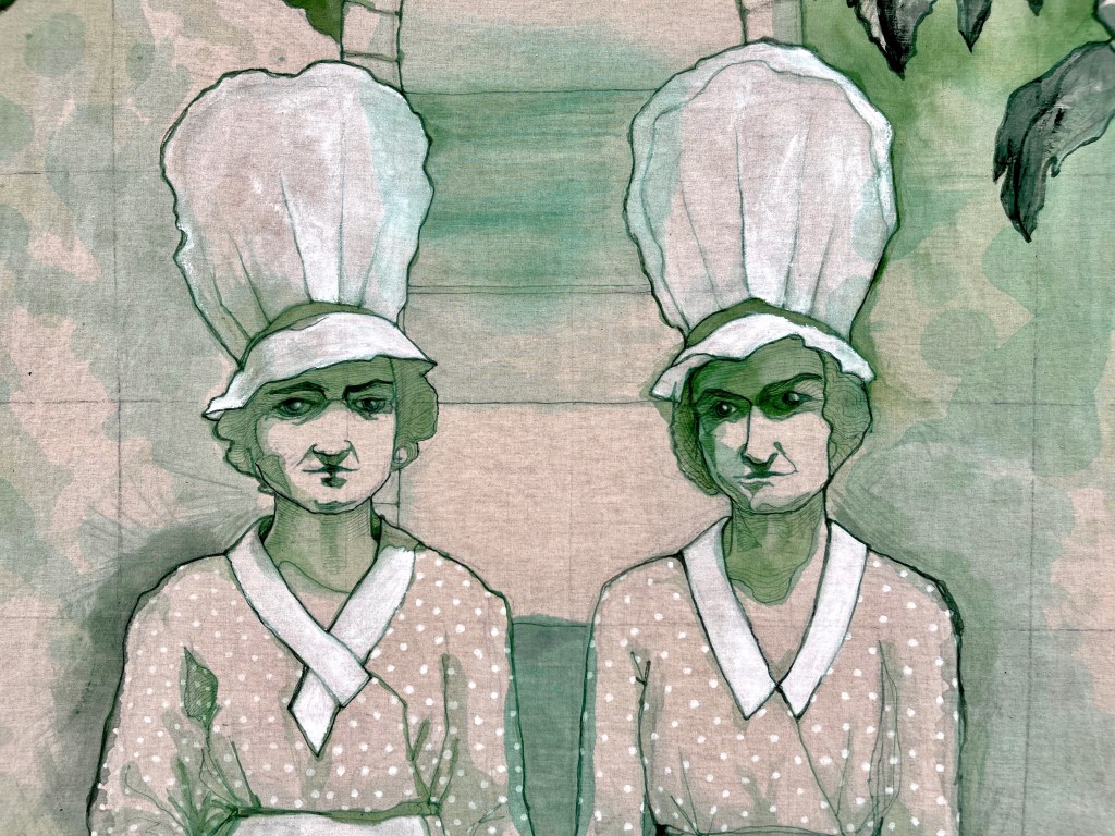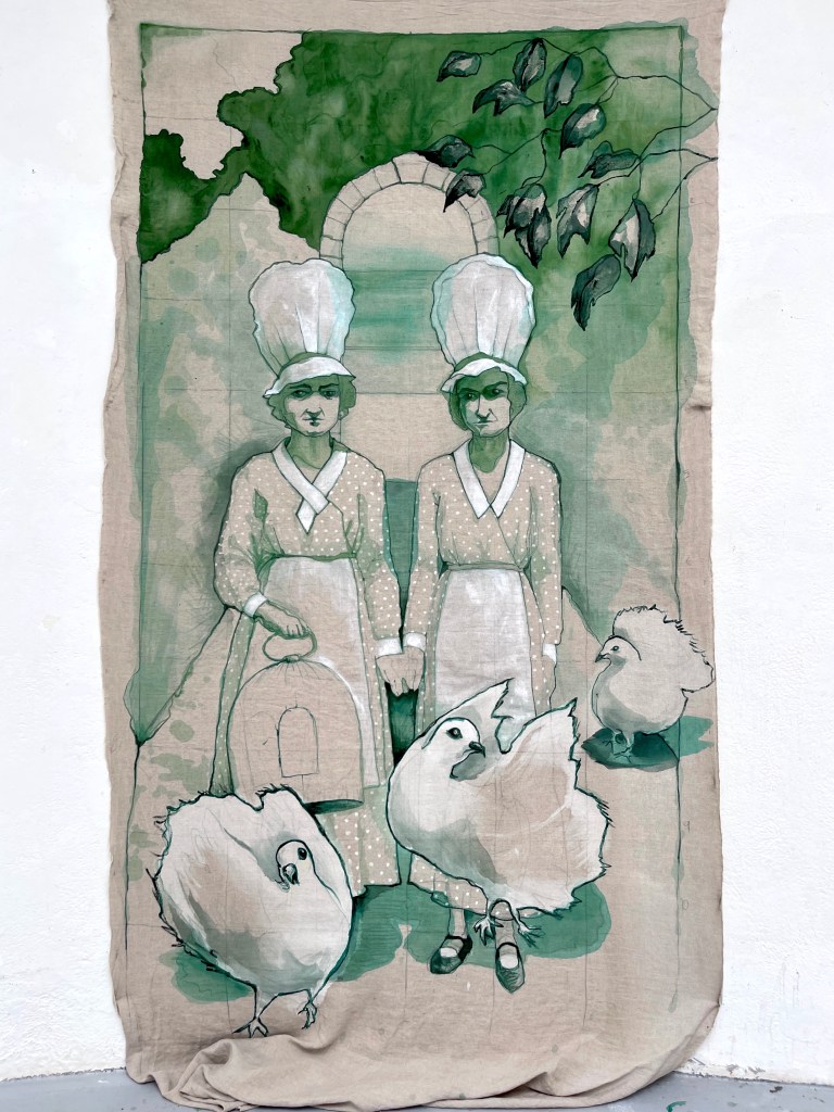 The birds, like the Clews’ domestic pets, were beloved by the family. But they were captive. It was this paradox – Marie Clews’ creative freedom and the birds’ lack of freedom – that prompted my series of works. I suggest the unequal power relations among humans (domestic workers and employers) and between humans and birds. It is this interspecies and classed environment that is no longer visible today, but which is part of the garden’s history.