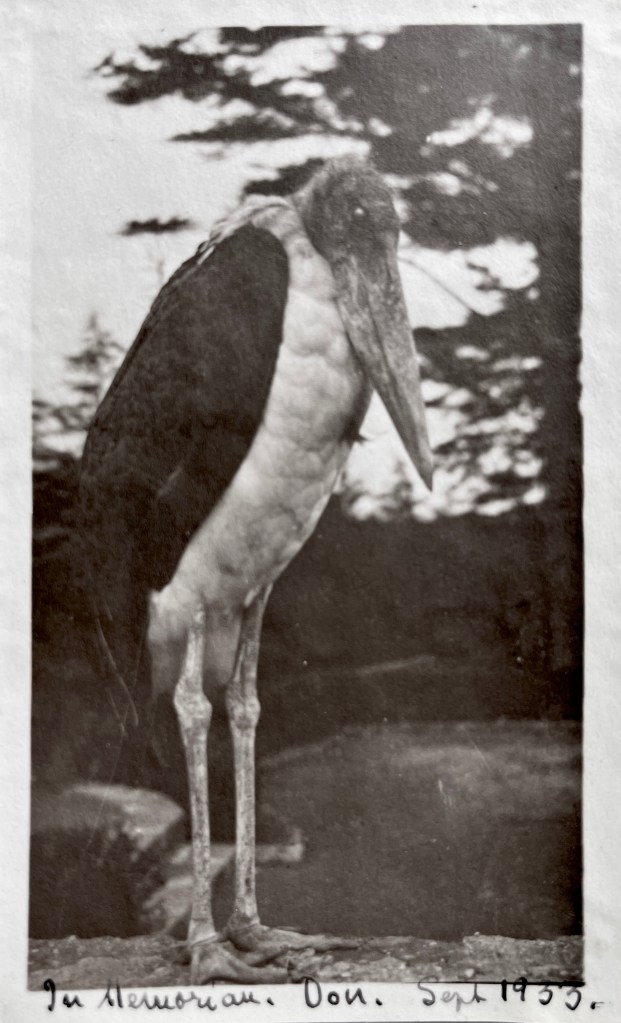 How magical it would have been to enter Marie Clews’ gardens to find the dark foliage contrasting with the white petals and feathers of various birds. What a dream-like encounter to turn a corner in the garden, and find a white peacock resting on one of the many stone garden elements, or see the white flamingos bathing in the pond. Yet the photographs are also evidence that, like other menageries, the Clews’ garden was not a place that the birds were free to leave.
